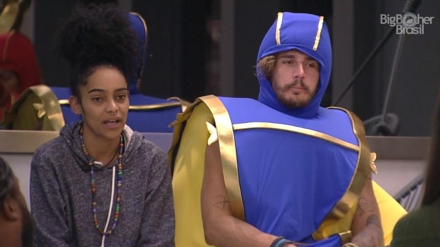 "Você tá bem agora?", perguntou Gabriela. "Eu precisava conversar. Você me disse pra eu seguir o coração e a cabeça. Eu falei muito que eu estou me sentindo carente, mas não. Claro que não é isso. Tipo colocando a culpa como se fosse só na carência, mas não é isso". Gabriela ouviu o amigo, mas alertou: "É importante você entender que também faz parte. A carência faz parte daqui, e é três vezes mais forte do que lá fora, mas tem que pensar em tudo"