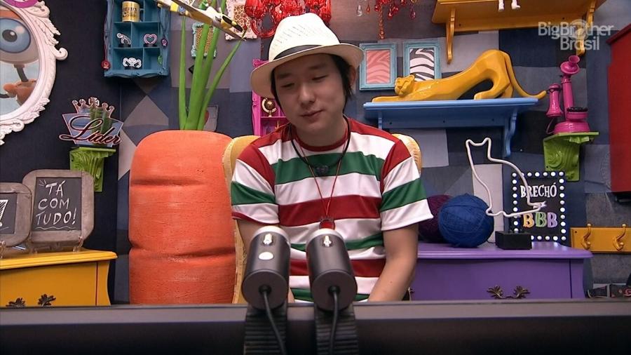 Depois de conversar com alguns brothers sobre a festa Guerra e Paz, Pyong foi para o confessionário do BBB 20 para realizar o raio-x. As informações são do UOL.
