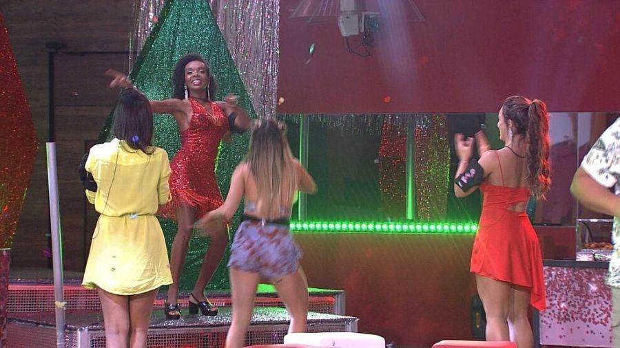 Thelma estava animada no início de sua festa, inspirada no universo dos barracões de escola de samba, e acabou mostrando demais na noite de hoje no BBB 20. As informações são do UOL.
