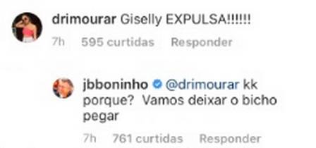 "Gizelly expulsa", escreveu uma fã. "Por que? Vamos deixar o bicho pegar fogo", disse o diretor.