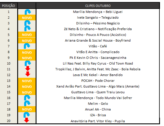 O hit “Bebi Liguei”, de Marília Mendonça, é o grande destaque de outubro no TVZ – o clipe obteve o maior índice de audiência no mês. O segundo clipe mais assistido foi “Teleguiado”, de Ivete Sangalo e na sequência vem Dilsinho, com “Péssimo Negócio”. Também estão no ranking Zé Neto & Cristiano, com “Notificação Preferida”, Vitão e Anitta em “Complicado”, PK em parceria com Kevin O Chris com “Sacanagenzinha” e Xand Avião com Gusttavo Lima em “Algo Mais (amante)”.