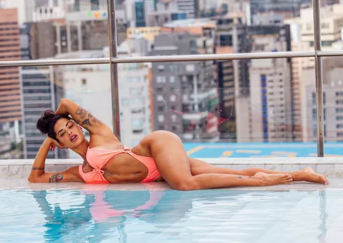 Aline Riscado começou o dia animada na manhã desse domingo (02.02). Usando o biquíni hit do momento com decote invertido, ela publicou um fotão a beira da piscina para celebrar a estação mais quente do ano. "Vem Verão", escreveu ela.