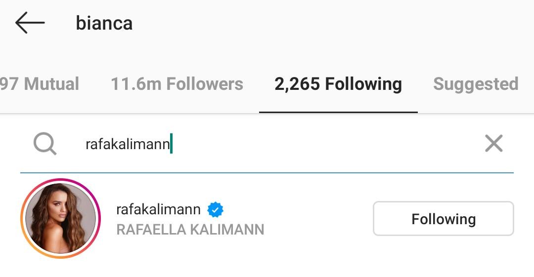 Agora é possível encontrar o perfil de Bianca ao pesquisar nos seguidores de Rafa e vice versa. As duas haviam parado de se seguir após uma briga que as duas tiveram no início do BBB 20, bêbadas em uma festa, em que acabaram se exaltando.