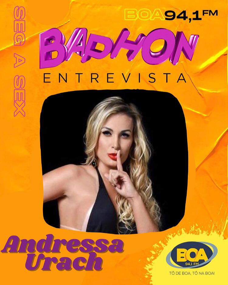 A modelo Andressa Urach, de 33 anos, que anunciou recentemente seu retorno ao Miss Bumbum, vai conceder entrevista exclusiva nesta quarta-feira (10), aos programas Baphon, na Rádio Boa FM (94.1 FM) a partir das 12h e também ao programa Vida de Artista, a partir das 15h30, na Rede Meio Norte (Canal 7).