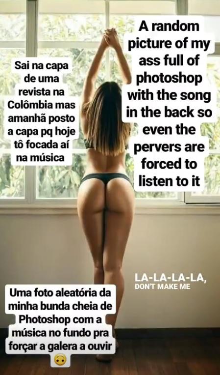 Em seu Instagram, Anitta comentou a polêmica. "Uma foto aleatório da minha bunda cheia de Photoshop com a música no fundo pra forçar a galera a ouvir", disse ela, admitindo o uso.