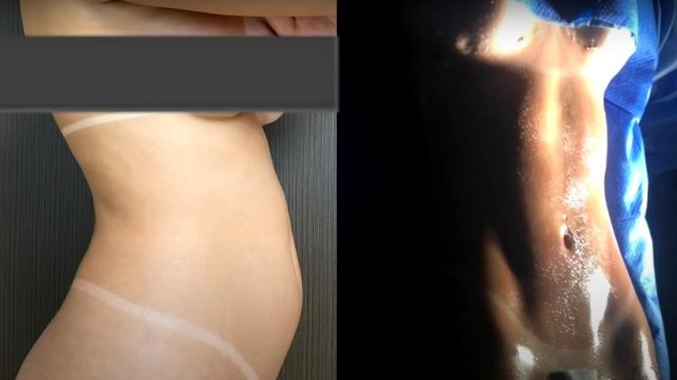 Ela aproveitou também para retirar gordura da região íntima. Num vídeo em seu canal, explicou que o procedimento foi feito para evitar "a diferença de nível da barriga para as partes íntimas" após a lipo.