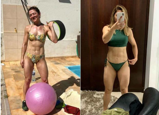 Karina Lucco, mãe de Lucas Lucco, publicou fotos no Instagram, nesta segunda-feira (16), que chamou a atenção dos seguidores. Ela fez um antes e depois do corpo, mostrando que agora (foto de biquíni verde) sua barriga está menos musculosa.