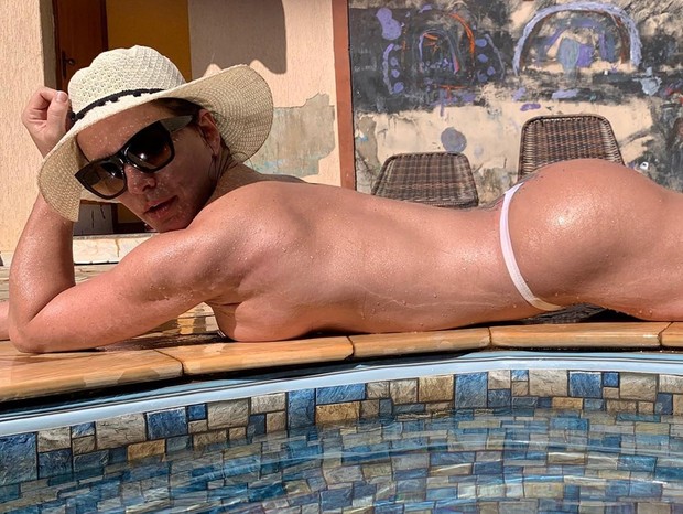 Núbia Oliiver fez a temperatura subir ao compartilhar fotos no Instagram neste sábado (11) ao tomar sol à beira da piscina durante a quarentena devido ao coronavírus. Na imagem, ela aparece fazendo topless e usa um biquíni branco fio-dental. As informações são da Quem.