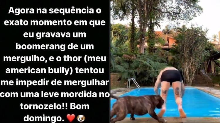 "Óbvio que eu não vou brigar com ele, até porque ele não teve culpa nenhuma. A intenção dele foi me proteger. O Thor foi adotado, então não sei o histórico de traumas que ele tem. Imagino que isso é uma particularidade dele, não gosta de jeito nenhum que as pessoas de casa entrem na água. Ele fica desesperado do lado de fora. Pelas atitudes dele, ele deixa claro que quer salvar, tirar as pessoas de dentro da água", contou.