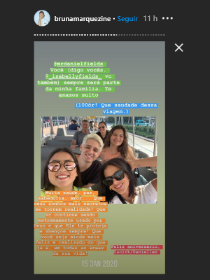 Em casa por causa da pandemia do novo coronavírus, Bruna Marquezine sentiu por não poder ver Daniel Campos no dia do seu aniversário. Mas a atriz usou os Stories do Instagram para se declarar ao amigo e contou já ter se emocionado por conta do isolamento. As informações são do site da UOL.