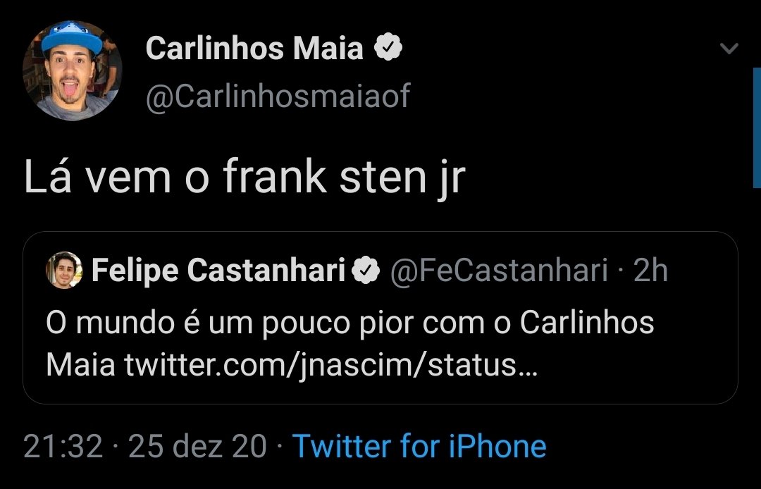 — Felipe Castanhari aka frank sten jr (@FeCastanhari) December 25, 2020