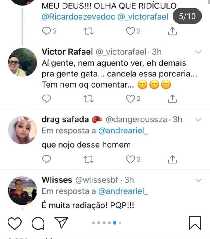 O assunto foi um dos mais comentados no Twitter. Rapidamente se espalhou pela rede social, onde muitos internautas fizeram duras críticas à situação. ''Esse homem não cansa de passar vergonha'', disse uma internauta. ''Realmente não tem noção nenhuma'', escreveu outro. A publicação no Instagram da Rainha Matos já chega a cerca de 2000 comentários e quase 10 mil curtidas.