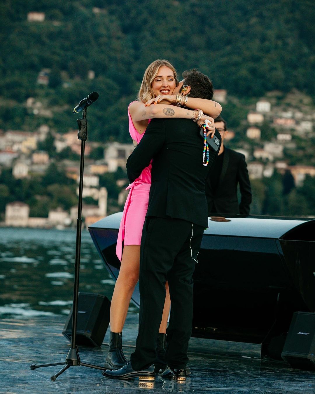 “Eu juro que você me faz querer o futuro. Você me deixa ganhar e depois quer uma revanche. E discutir com você é melhor do que cinema ", dizia a letra da música, que, como a própria influenciadora revelou, foi escrita para a ocasião. "Ele me levou a uma plataforma no lago de Como e cantou um nova música escrita para mim ”.Fedex e Chiara são pais de Leo e Vittoria. Em 2019, o rapper revelou em uma entrevista que corre o risco de desenvolver esclerose múltipla.