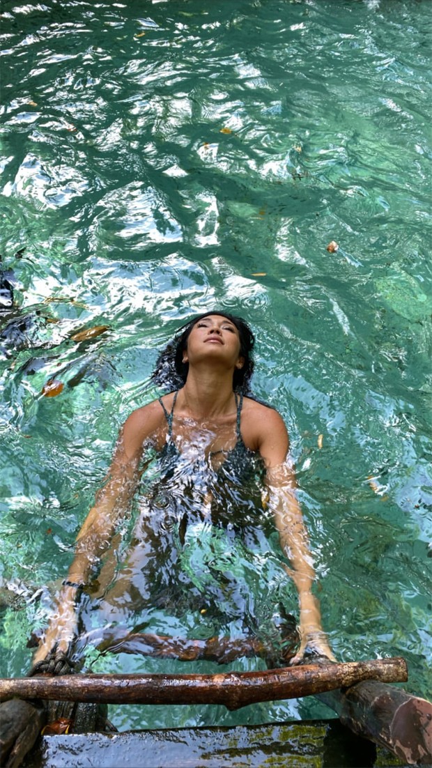 Danni Suzuki mostrou, em seu Instagram, um pouco da viagem ao Jalapão. Na manhã desta sexta-feira (8), a atriz compartilhou uma série de fotos em que aparece de biquíni aproveitando um banho de rio e a natureza local. As informações são da Quem.