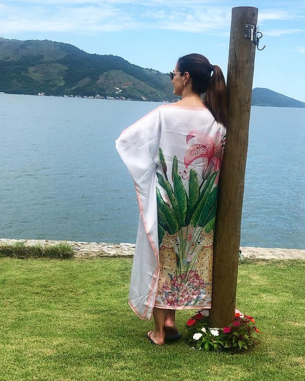 "Já estou liberada pra dar pequemos passeios pelo condomínio, sem fazer esforço. Exercício, banho de mar e de piscina ainda estão na lista dos proibidos. Mas não resisti em botar o pé na areia por uns minutinhos e - com a praia completamente deserta - tirar uma foto sem máscara", contou.