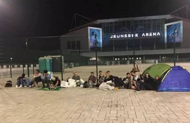 Os admiradores levaram barracas e cobertores para passar a noite em frente à Jeunesse Arena, no Rio de Janeiro, onde os irmãs se apresentam em agosto. A foto foi publicada por fãs-clubes nas redes sociais.