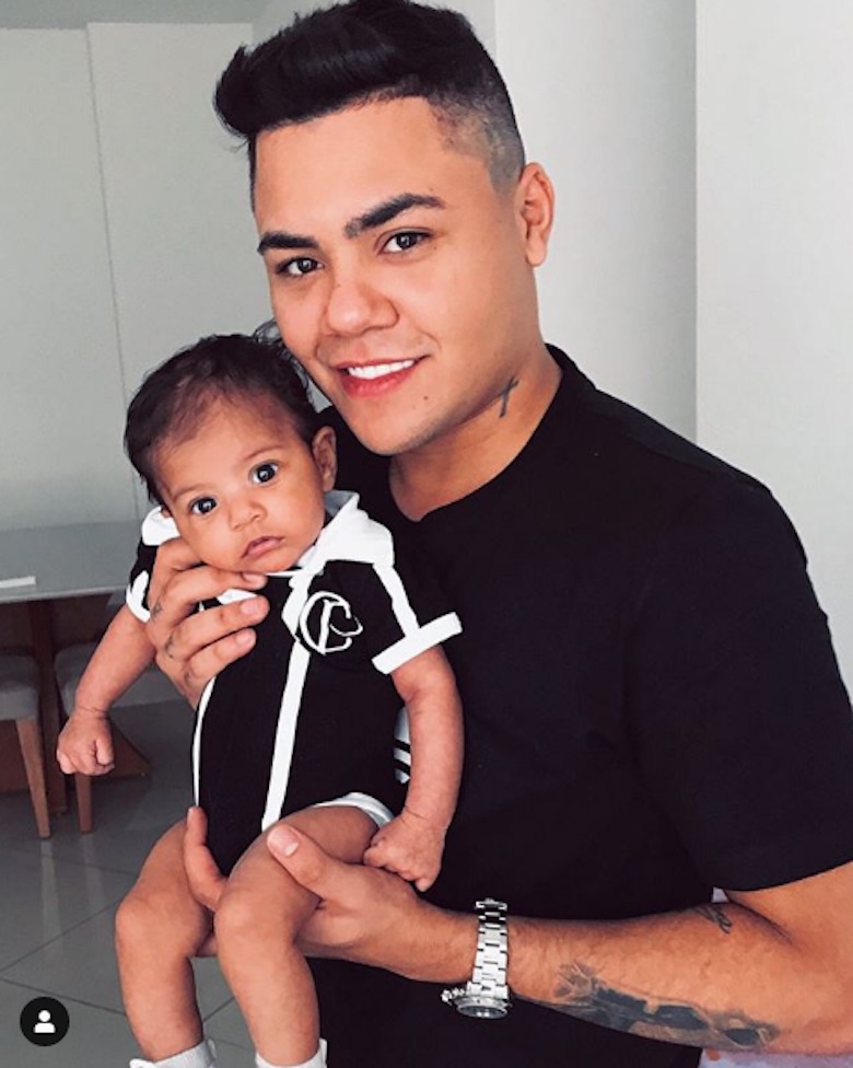 Enquanto a jovem estava com o pequeno, o cantor aproveitou seu dia de descanso, em sua mansão, em Goiânia, Goiás.