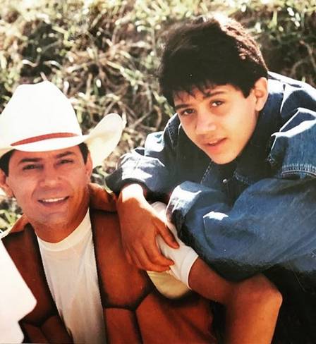 Reconhece os rapazes da foto acima? São os filhos do cantor Leandro (da dupla, com Leonardo), que morreu de câncer há 21 anos. O primeiro é o caçula Leandrinho, hoje com 21, e o outro é o mais velho, Thiago Costa, que chegou a fazer carreira como cantor, formando uma dupla com o primo Pedro nos anos 2000. Os dois são a cara do pai.