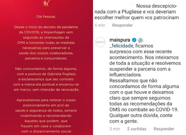 "Nos inteiramos de toda a situação e resolvemos suspender a parceria com a influenciadora. Ressaltamos qe não concordamos de forma alguma com o que houve e deixamos claro que sempre seguimos todas as recomendações da OMS no combate ao Covid-19", declarou a marca.
