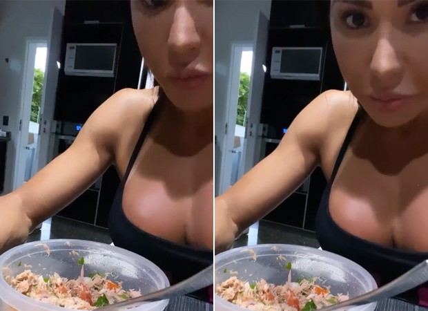 "O que vocês estão fazendo em casa? Eu já fiz cardio, já treinei, já cozinhei, já limpei a casa, fiz vídeos e um monte de coisa. Mas o que eu mais faço, é comer. Porque em casa, toda hora dá fome", disse ela, enquanto encarava mais uma garfada de ovos mexidos.