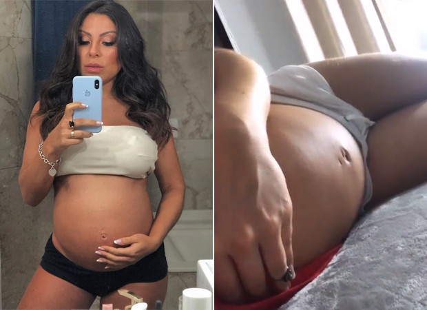 Nas redes sociais, ela mostrou o barrigão mexendo e comemorou: "Olha lá, mexeu! Ele estão mexendo!", disse a morena, feliz da vida. O registro foi feito para responder a pergunta de uma fã. Ela questionou se a mamãe sente o bebê mexer. Nas imagens, a mulher do filho de Gretchen deu um close no barrigão e encantou os seguidores.