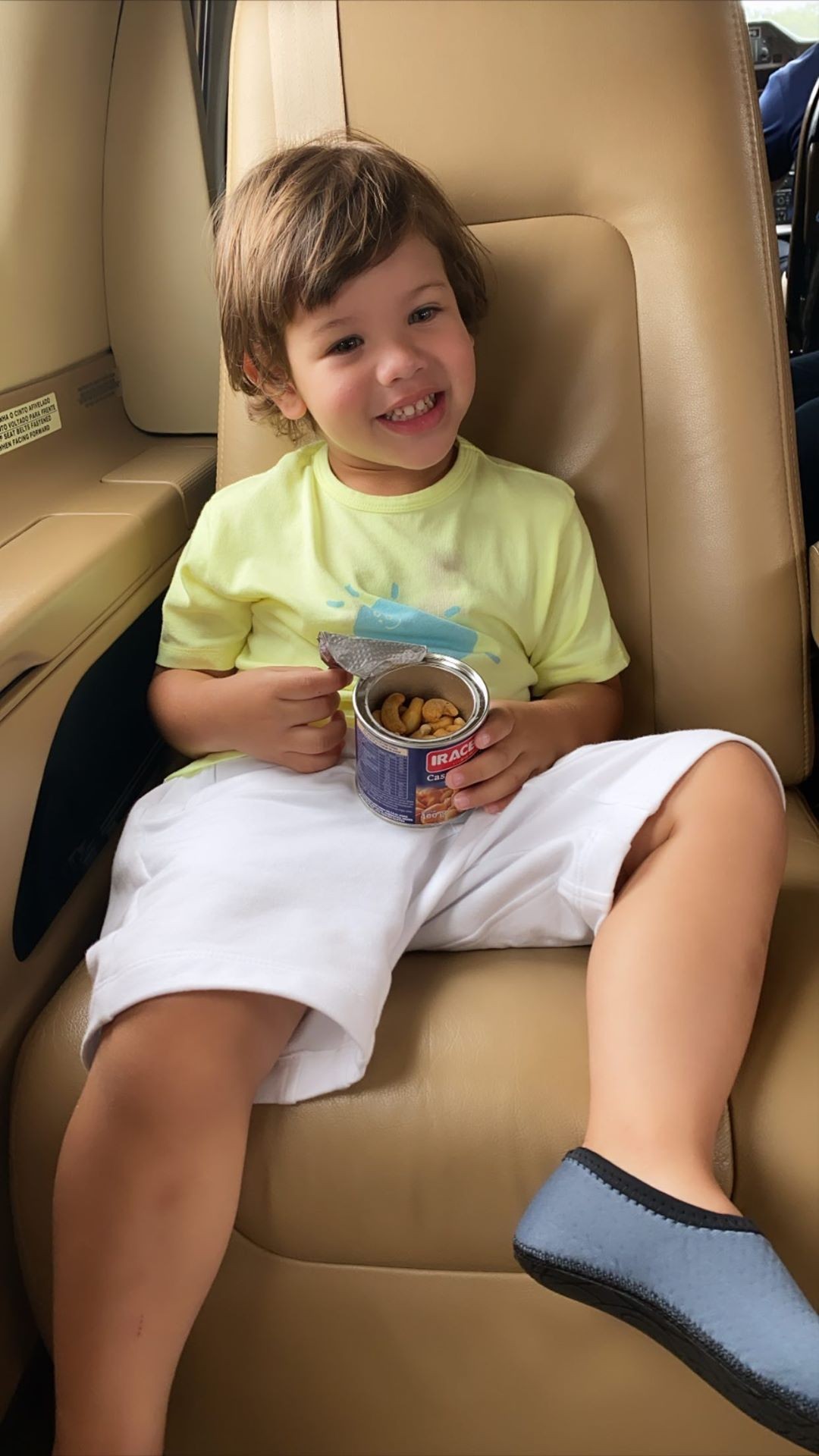 Nas imagens, é possível ver o sertanejo e a modelo com os filhos, Gabriel, de 2 anos de idade, e Samuel, 1, na aeronave privada da família, que foi comprada em outubro do ano passado. O modelo, inclusive, é de valor multimilionário.