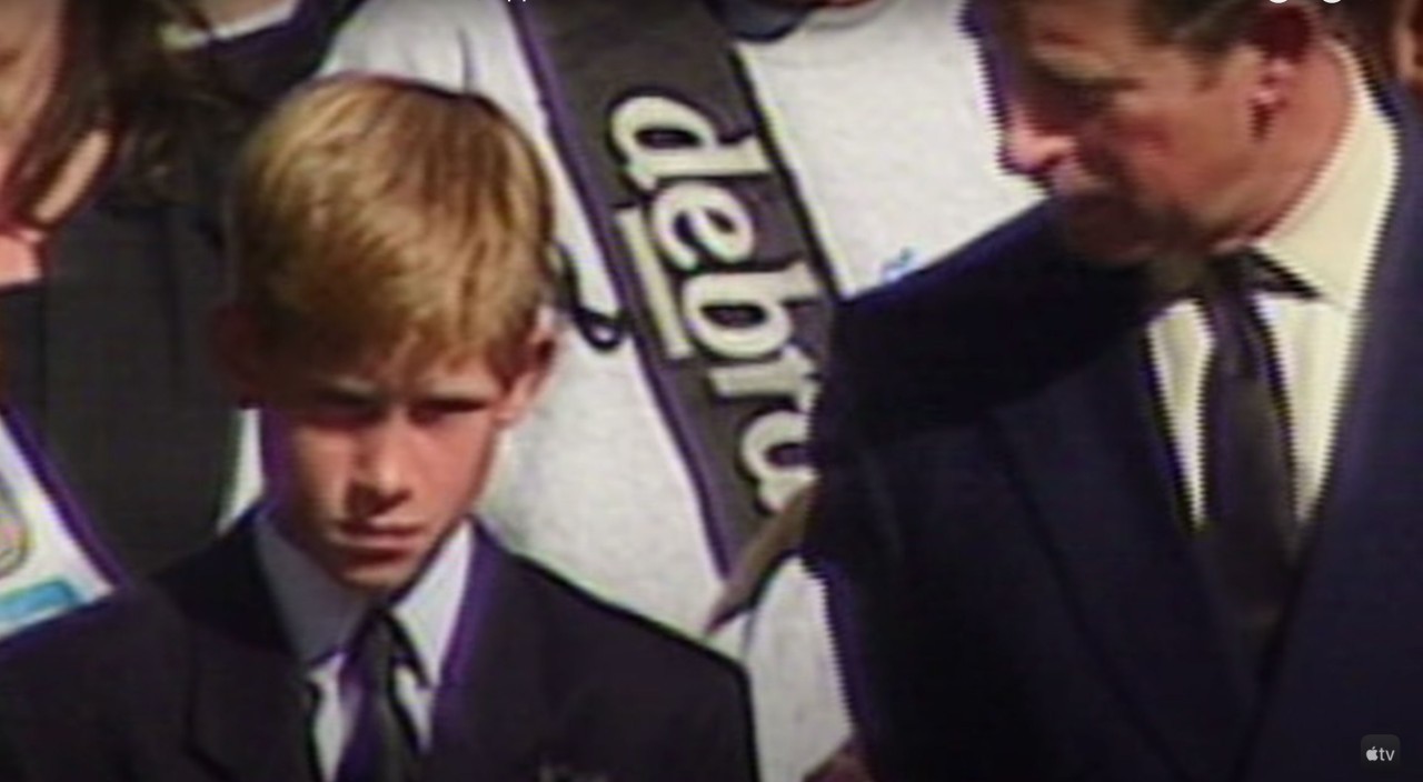 O príncipe Harry no funeral de sua mãe, a princesa Diana, em 1997 (Foto: reprodução)