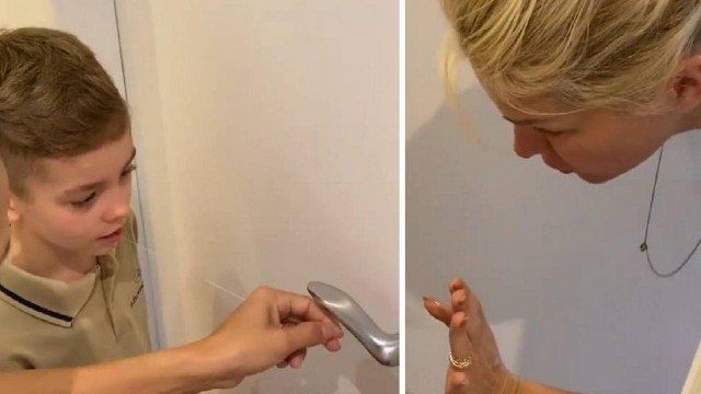 Ana Hickmann resolveu utilizar um método tradicional para arrancar o dentinho do seu filho Alexandre Jr., de 5 anos. Nesta sexta-feira, a apresentadora amarrou o dente mole com uma linha e prendeu numa maçaneta. "Só estou com um pouco de medo, mas muita coragem", disse o menino. Apesar do esforço, a tentativa não deu certo. "Sem sucesso", escreveu o marido de Ana.