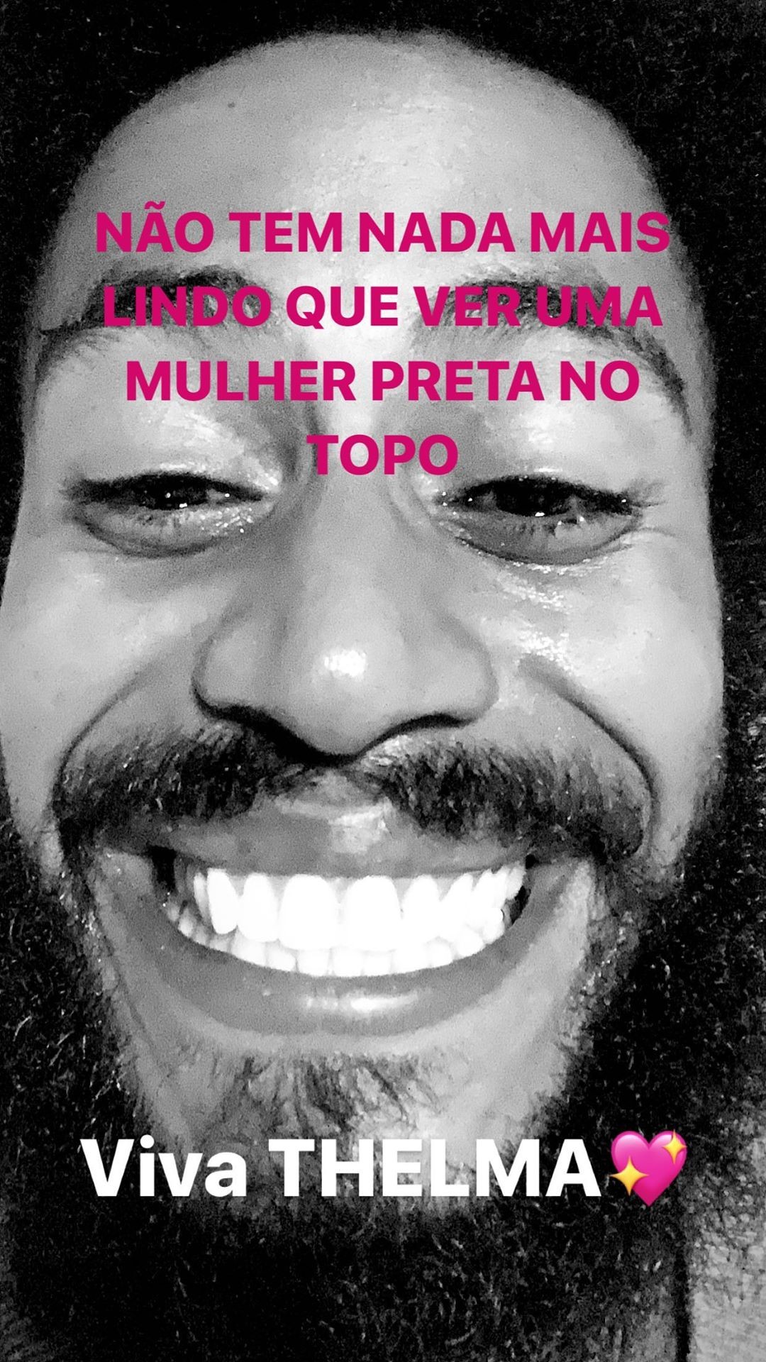 Nos Stories, ele também vibrou: "Não tem nada mais lindo que ver uma mulher preta no topo. Viva Thelma!"
