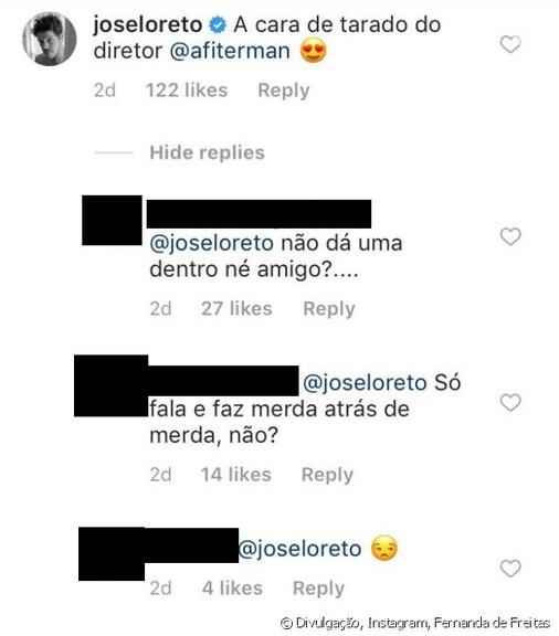 O ator José Loreto foi duramente criticado nas redes sociais após fazer um comentário em uma foto da atriz Fernanda de Freitas. Os internautas não gostaram da atitude no rapaz ao ver a foto de uma cena de romance entre as personagens Louise (Fernanda) e Laura (Yanna Lavigne) na novela O Sétimo Guardião. As informações são da Contigo.