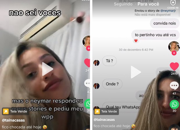 Uma jovem viralizou no Tik Tok ao revelar uma conversa com Neymar Jr. na virada do ano. Tainá Casas contou que estava em Bombinhas, em Santa Catarina, onde Neymar passou dois dias - no réveillon ele foi Mangaratiba, onde tem casa.