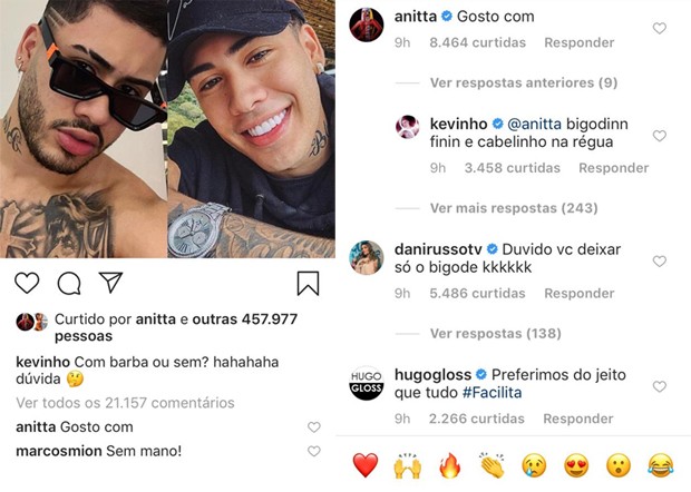 Kevinho pediu a opinião sincera de seus seguidores no Instagram sobre deixar ou não a barba. A publicação, que tem mais de 460 mil curtidas, ganhou comentários de celebridades amigas do funkeiro, como Anitta, Marcos Mion e Psirico.