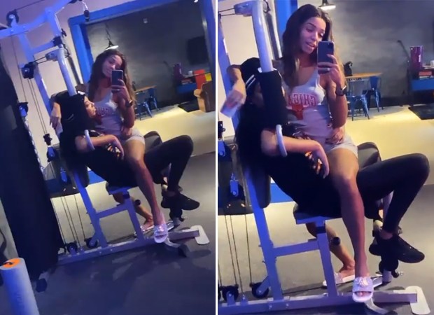 "Ela veio malhar e eu vim atrás, né? Porque sou grude. Nem na hora do aparelho eu desgrudo. Vim aqui no aparelho ficar pertinho dela", disse Bruna em vídeo publicado no Instagram. Enquanto a bailarina Falava, Ludmilla aproveitou para abraçar e dar um chamego na amada, se mostrando romântica também.