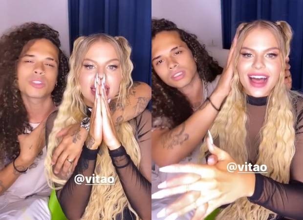 "Estou aqui com minha parceira Luluca e queria agradecer por mim e por ela a todos os views no nosso clipe, que é o clipe mais amado do Brasil", falou Vitão.