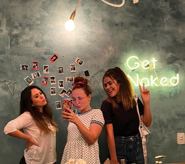 Tatá Werneck recebeu em sua casa a vista de Larissa Manoela e Maisa, na noite deste último sábado (18). As três posaram juntas em seu banheiro, que é famoso nas redes sociais pela decoração descolada e com fotos dos visitantes. As informações são da Revista Casa Jardim.