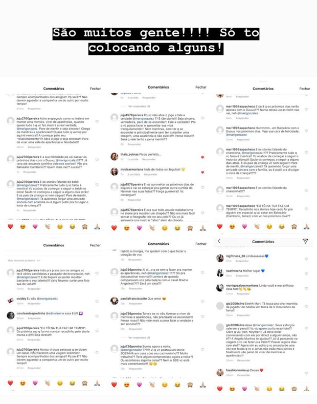 "Eu exponho a minha vida aqui, na hora de uma situação difícil eu também tenho que expor. Muita gente que me segue aqui gosta de mim e de Jonas. Eu quero deixar registrado, não sei quanto de perigo está tendo, não sei o nível psicológico dessa pessoa. Já estou procurando ajuda, mas queria compartilhar com vocês. Isso já está acontecendo há um tempo, meus amigos já sabiam", contou Mariana.