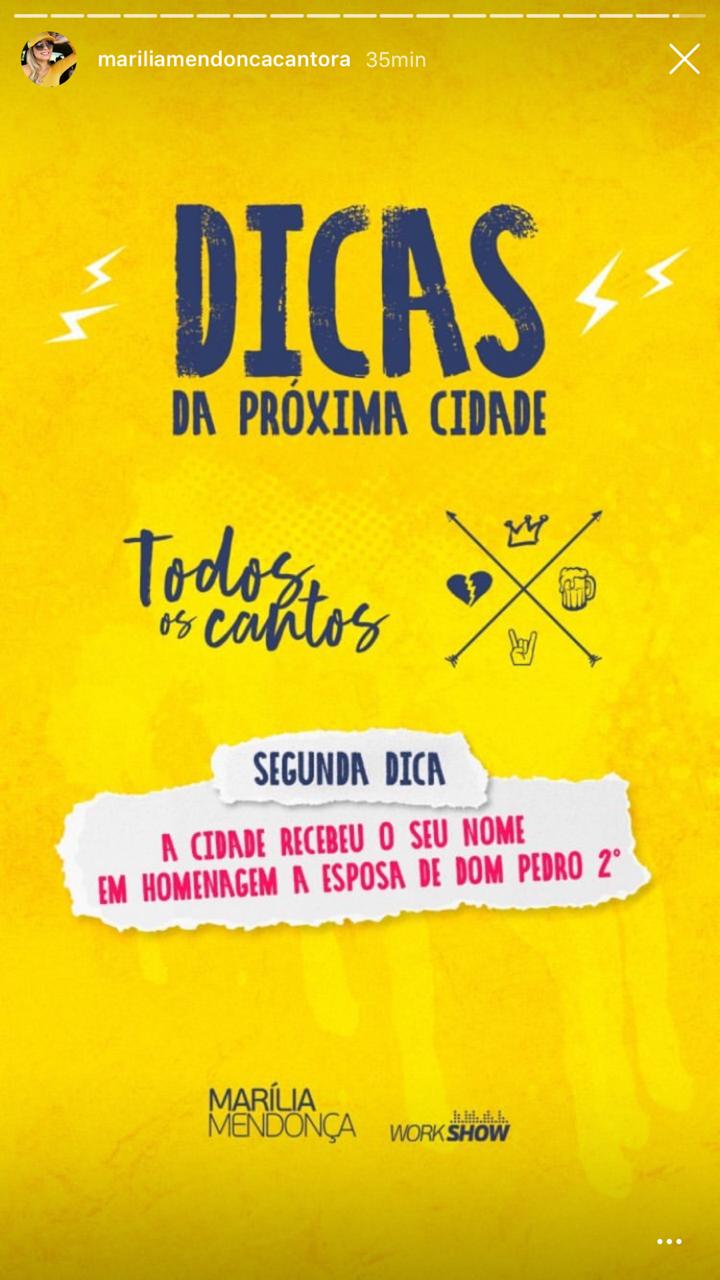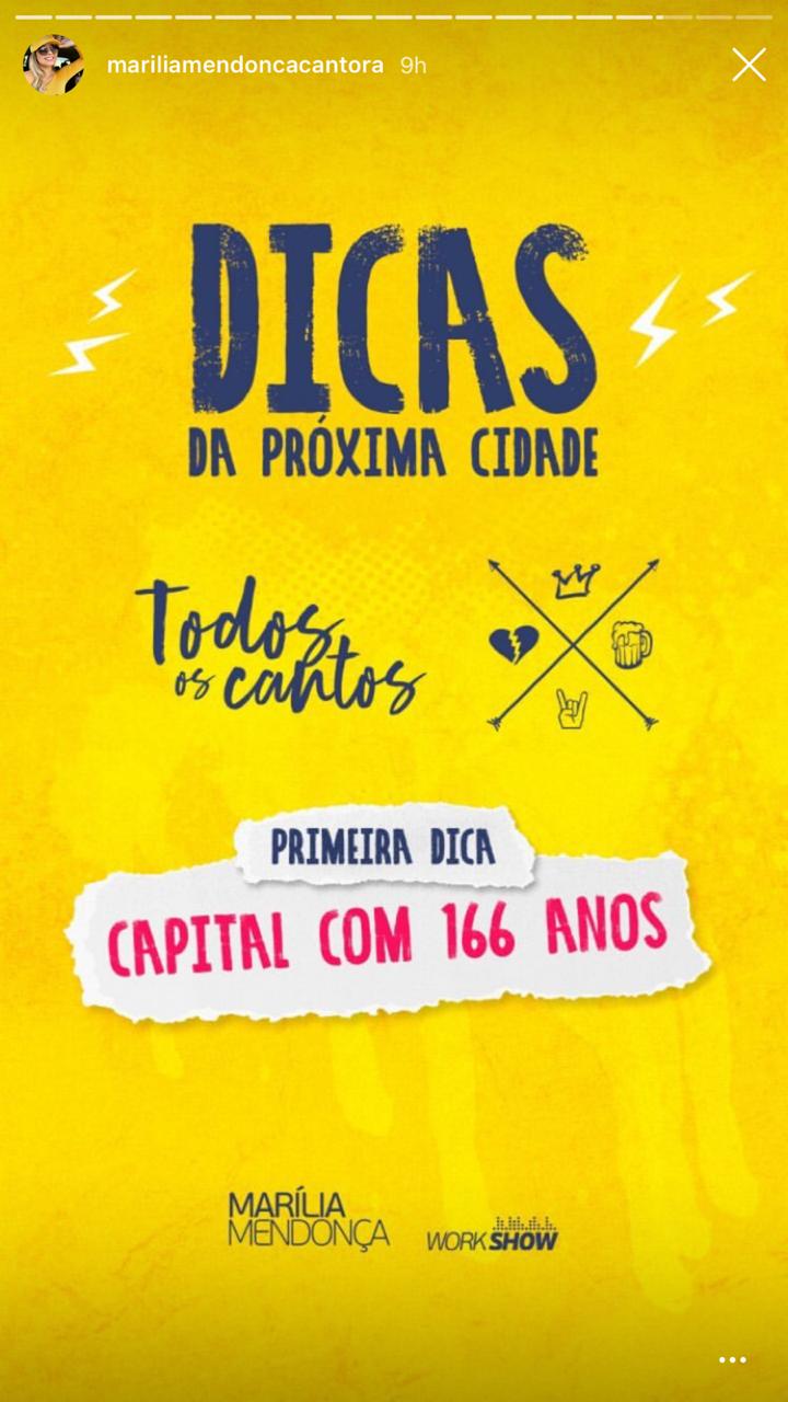 A cantora segue com o projeto até o final do ano, quando deve lançar o DVD “Marília Mendonça – Te Vejo Em Todos Os Cantos”, com 27 faixas.