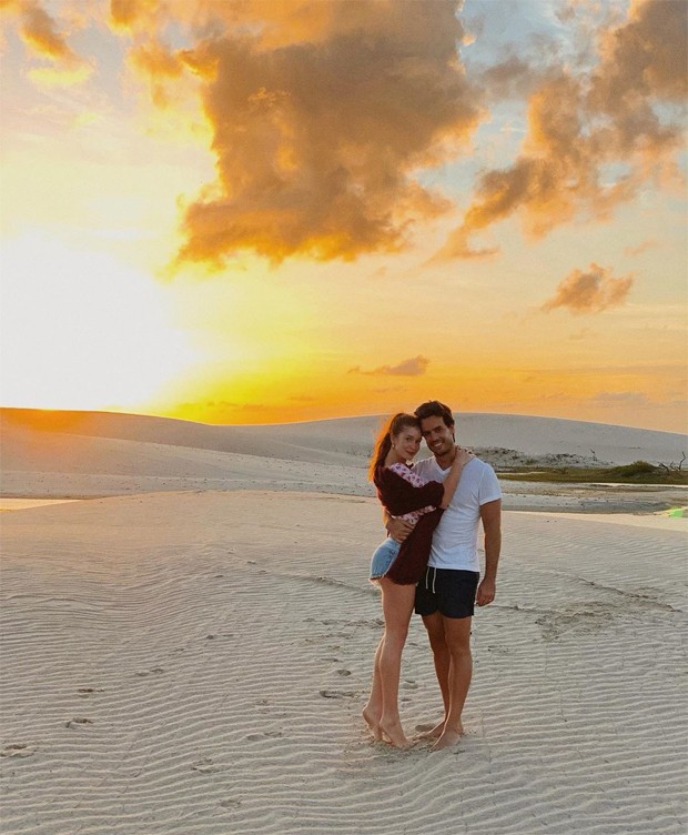 Marina Ruy Barbosa está curtindo férias com o marido Xandinho Negrão no Ceará. A atriz compartilhou mais um registro da viagem em seu perfil do Instagram nesta quarta-feira (5). "Para onde você vai quando quer escapar do caos da vida?", escreveu ela ao posar com o piloto nas dunas.
