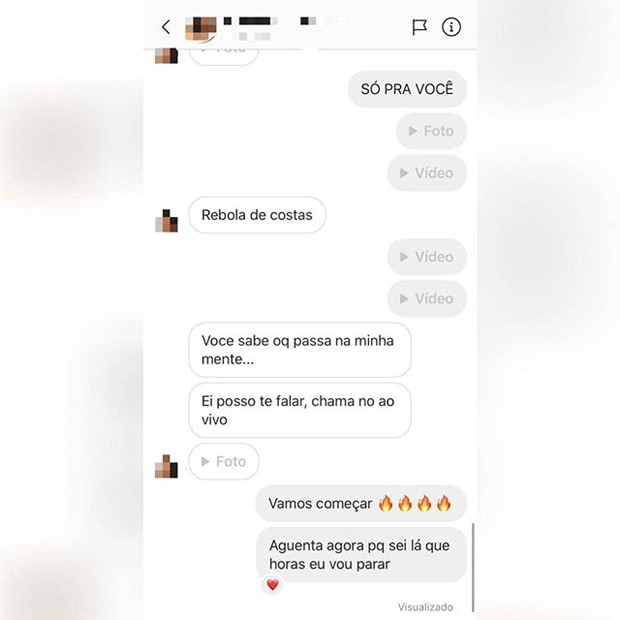 A conversa começa com a própria funkeira provocando. "Sei que quer me ver, liga logo a câmera". A pessoa, então, rebate: "Não tem nada que está perto para fazer acontecer".