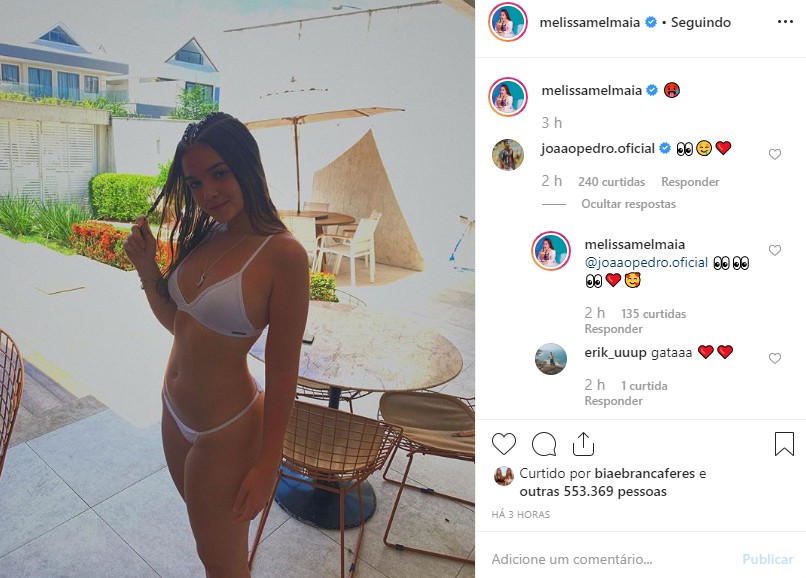 O jogador João Pedro, do Fluminense, também se derreteu e deixou um comentário de olho e 'babando' pela namorada (veja abaixo).