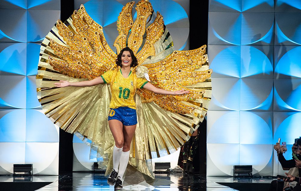 Strutting in to the Top 20... BRAZIL!!!!#MissUniverse2019 LIVE on @FOXtv. Airing in Spanish on @Telemundo. pic.twitter.com/qbenQFWMYc