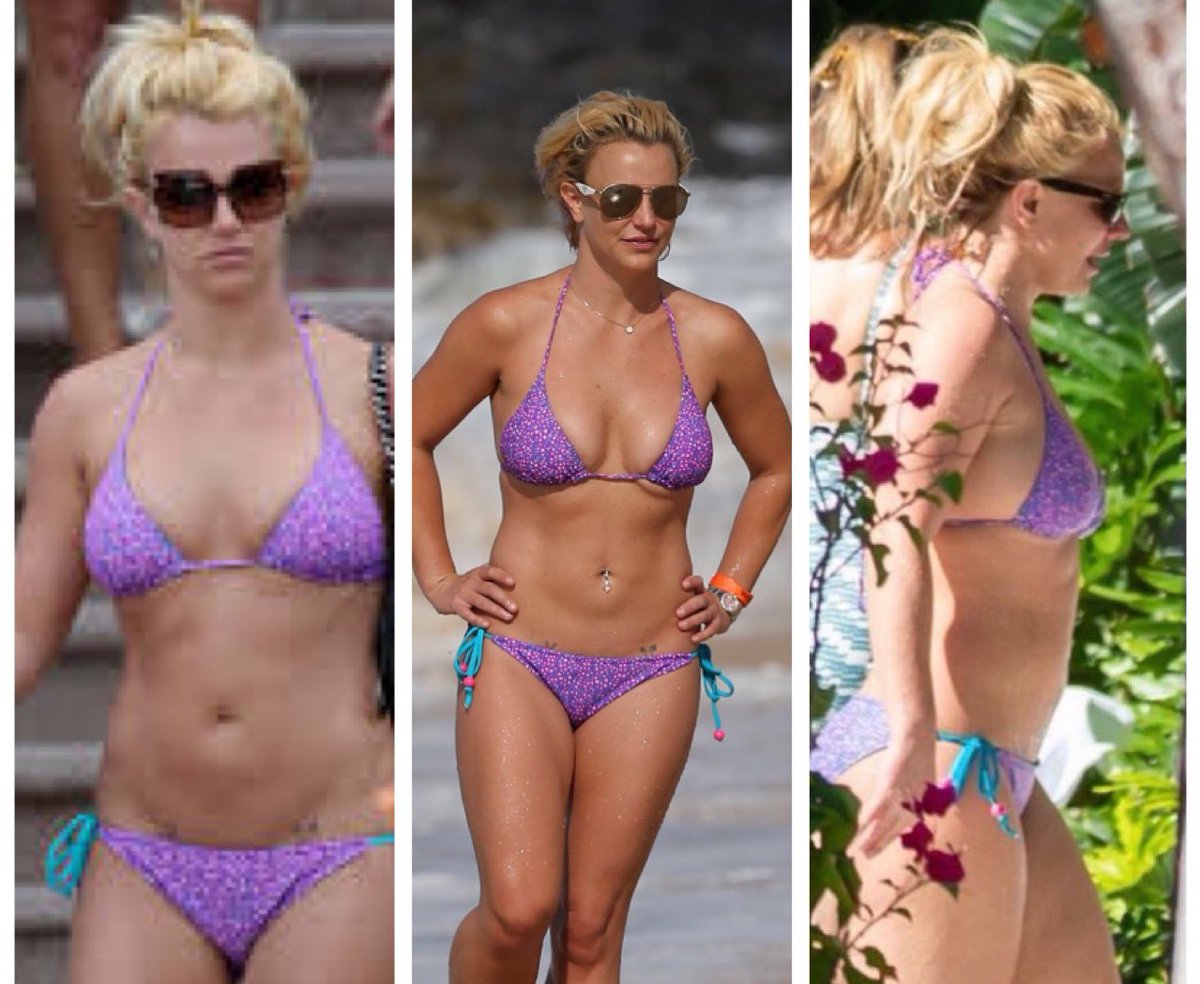 A página do Twitter @BSpears_BR postou três momentos da Britney com o biquíni, em 2009, 2015 e o mais recente dessa semana. Na primeira imagem, ela estava em Marina Del Rey, na Califórnia, em 2009, durante mini-férias com os filhos Sean e Jayden, que na época tinham 3 e 2 anos, respectivamente. Depois, em 2015, flagrada nas praias do Havaí e exibindo seu piercing no umbigo (foto ampliada abaixo). Agora, 2019, a dona do hit Oops, I did it Again fez de novo e provou que quando a gente quer, uma peça de roupa é para a vida toda.