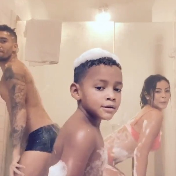 Já o ator, publicou: "Felicidade sem vocês, não é mais felicidade... É somente saudade! Meus amores #love #dança #dancing #funk #150bpm #funkbr #brasil #br #021 #riodejaneiro #errejota #sunga #piscinha #amor #familia #dancingbrasil #music #musica #song #song #somdasfavelas #favela".