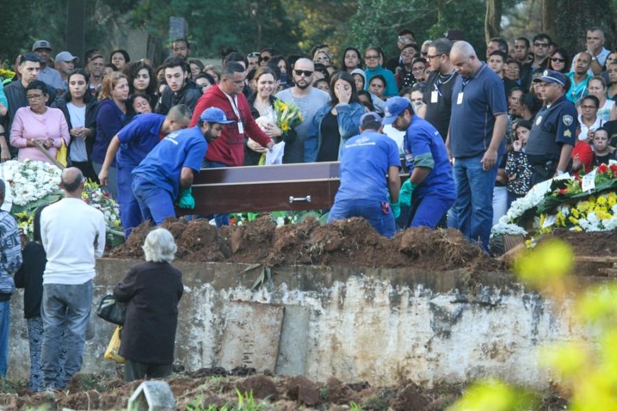 A jovem saiu do local às pressas cercada por amigos e acompanhada do advogado, que se apresentou como Wellington Lima dos Santos. Além dela, familiares, ex-colegas de elenco de “Chiquititas” de Rafael, vizinhos, fãs e muitos curiosos estiveram presentes no cemitério. A família foi aplaudida por centenas de pessoas durante o enterro. Rafael tem duas irmãs, Isabelly Victoria Miguel, 13, e Camilla Miguel, 26.