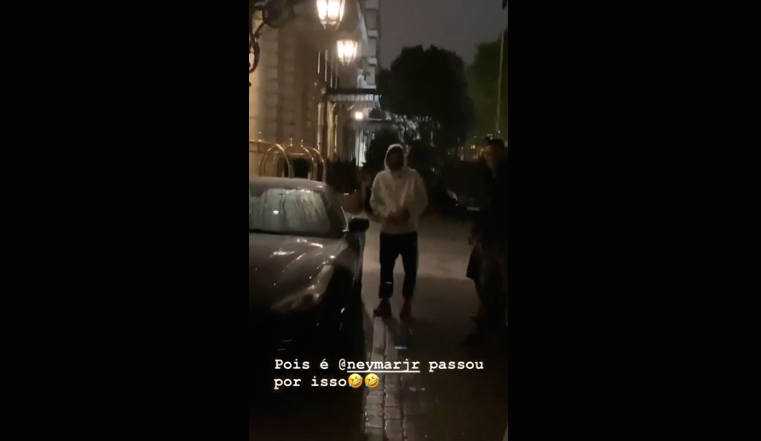 O momento foi registrado por Belle Silva, mulher do jogador Thiago Silva, e compartilhado no Instagram. "Já pensou em ter uma Ferrari e a chave não abrir? Pois é, Neymar passou por isso. No final deu tudo certo", contou ela, se divertindo.