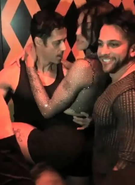 Nas imagens compartilhadas pelo ator, Rafael posa ao lado de Pabllo, que veste uma camisa brilhosa transparente, e os dois se beijam rapidamente após posarem para fotos. Logo depois, os dois aparecem num ambiente com mais claridade e se beijam novamente.