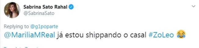 Nesta quarta-feira (24), Sabrina Sato fez questão de marcar a cantora em uma publicação no Twitter dizendo que apoia o namoro de sua filha, Zoe , com Léo. Marília Mendonça não declarou o ship do primogênito com a filha de Sabrina Sato , mas fez questão de brincar dizendo: "Esse Léo vai ter só gatinha na geração dele".