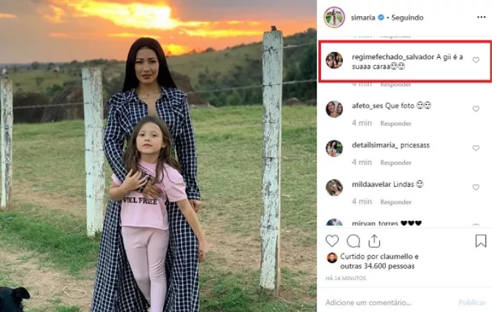 Os fãs da cantora adoraram o clique e comentaram sobre a semelhança entre as duas: "A Gii é a suaaa caraa", "Que foto", "Princesas", "Lindas".Simaria também é mãe de Pawel, de 3 anos. Os dois são frutos do seu casamento com o empresário espanhol Vicente.