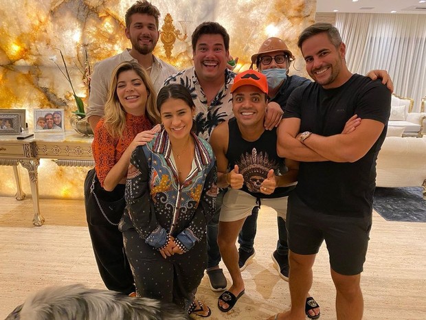 Gravidíssima pela segunda vez, a cantora Simone, que desta vez espera uma menina com o maridão, Kaká Diniz, abriu a mansão do casal para um reencontro de amigos daqueles, com vários rostos conhecidos do poúblico! Na noitada, que rolou na segunda-feira (16), estavam os humoristas GKay, Tirullipa, Rafael Cunha e Mução, além do cantor sertanejo Gustavo Miôto. Tirullipa, que se reuniu com o grupo em pleno aniversário de 36 anos, divulgou alguns registros sobre a comemoração.