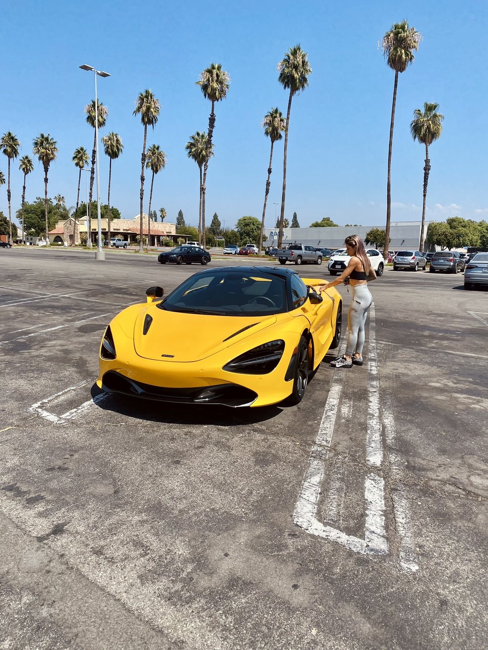 O automóvel da McLaren aparenta ser um S720, modelo top de linha da montadora inglesa. O de Letícia é predominantemente amarelo com detalhes em preto.